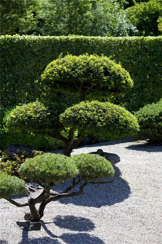 Wem es an Platz fehlt, der kann aber auch gerne auf eine der zahlreichen Zwergformen zurückgreifen. So sind es vor allem Kiefern, Wachholder und Tannen, die in Fachbetrieben als Zwergformen angeboten werden. Diese Arten wachsen langsam und kompakt und bilden schöne skulpturartige Formen aus. Diese Koniferen strecken ihre Nadeln elegant in vielen Farben empor. Die Palette reicht dabei von silbrigen über blaue Töne, aber auch gelbe bis sattgrüne und dunkle Nadeln sind möglich.