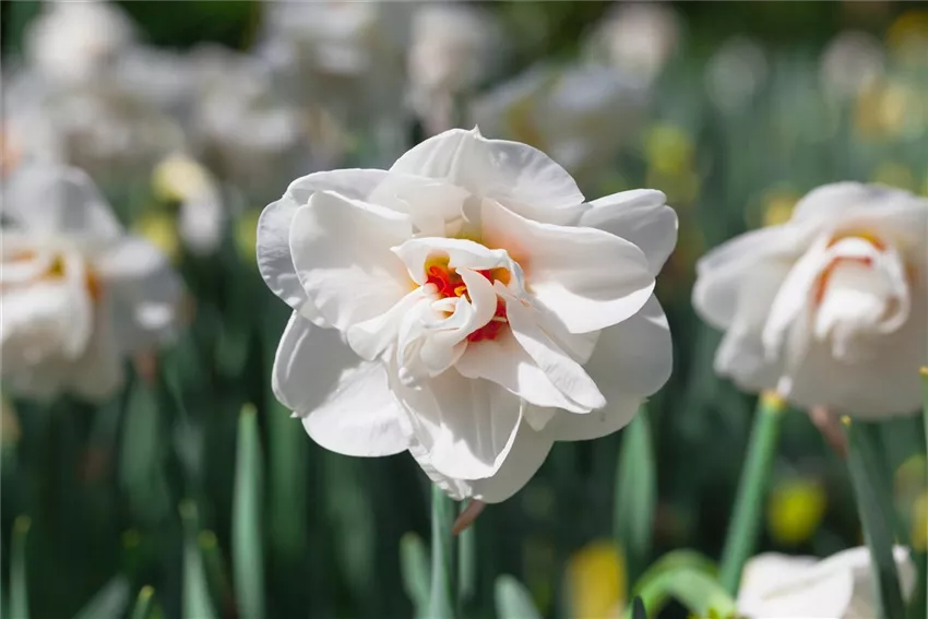 Weiße Narzissen und Tulpen sind eine wunderbare Kombination für den Frühling auf dem Balkon. Zwischendrin ein schönes Gras oder etwas Efeu sorgt für die nötigen Ruhezonen. Ohne das Highlight Stiefmütterchen kommt man kaum aus. Ein reizvolles Duett entsteht zusammen mit seiner Doppelgängerin, dem Hornveilchen, das freilich viel länger blüht. Drei Farb-Kompositionen zusammenstellen, und damit ist der Frühling auf dem Balkon angekommen. Primeln bieten sich für eine kleine, aber feine Unterbepflanzung an. Duftveilchen und Vanilleblumen bedienen die Freude am Geruchssinn.
