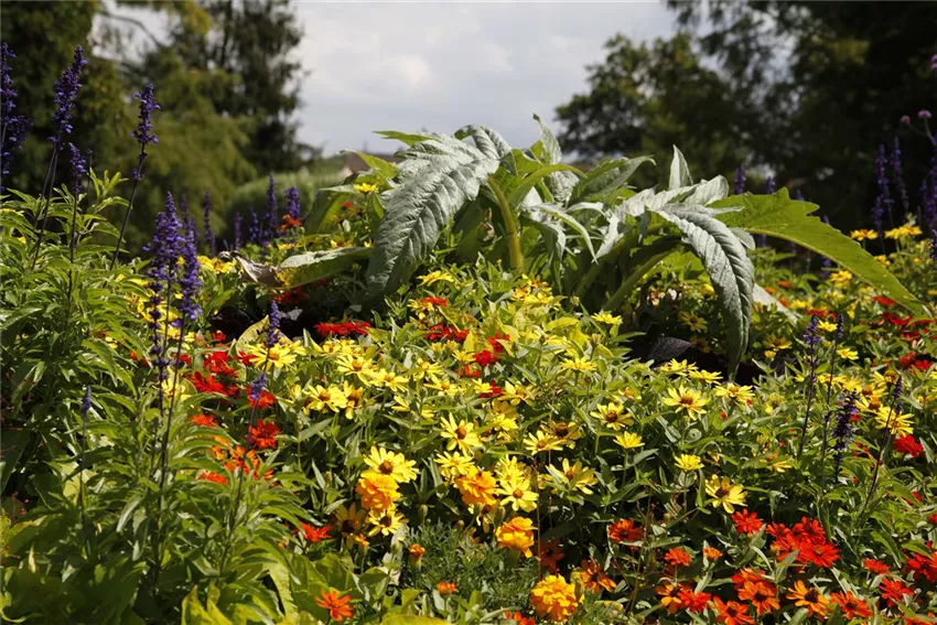 Blumenbeete in Blau und Violett