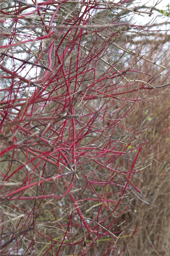 Viele herbstliche Pflanzen überzeugen mit bunten Ästen. Der Hartriegel ist besonders für seine roten Äste bekannt. Aber: nur die jungen Triebe sind tiefrot gefärbt. Ein regelmäßiger Rückschnitt des Hartriegels sorgt für frische Triebe, die sich dann perfekt in das herbstliche Gesteck integrieren lassen.