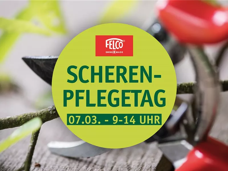 Am Samstag, den 07.03.2026, von 9:00 bis 14:00 Uhr begrüßen wir Herrn Thielemann von FELCO in unserem Gartencenter. Nutzen Sie die Gelegenheit für eine professionelle Beratung zur idealen Gartenschere und lassen Sie Ihre Felco-Schere kostenlos warten.