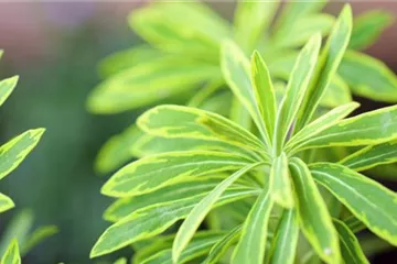 Wer eine besondere Staude für den eigenen Garten sucht, ist mit der Regenbogen Wolfsmilch auf jeden Fall auf der richtigen Seite. Schon die Blätter sind mit ihrer grün-gelben Farbe ein echtes Highlight. Und auch die Blüten in der gleichen Farbe sind später eine hübsche Ergänzung im Staudenbeet.